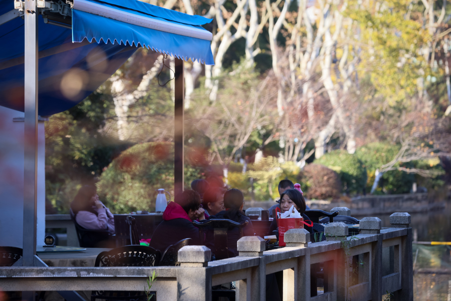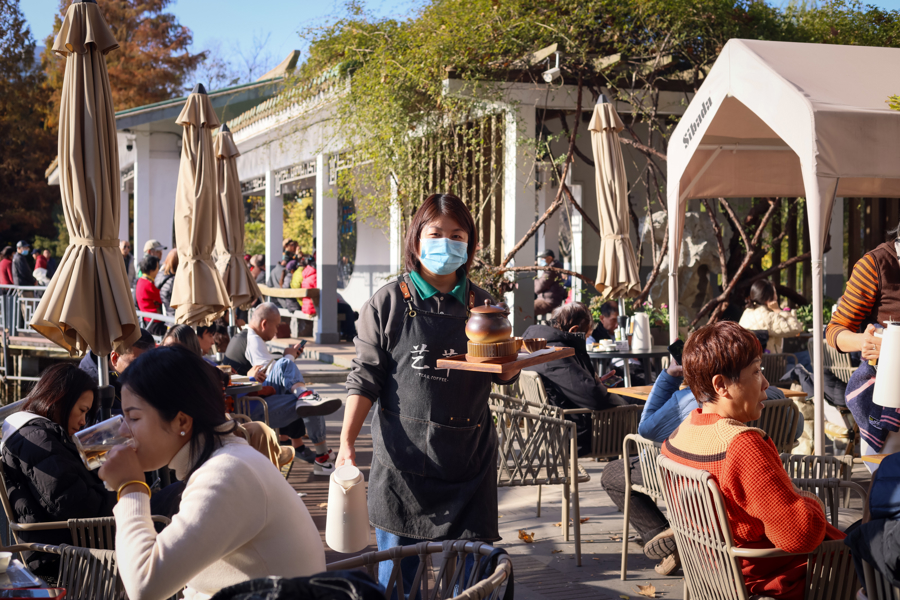 以鲁迅公园为例,近期客流多了三四成,人们的在园时间亦拉长——无论是“漂亮饭+美景打卡”的游客模式,还是“贴心服务+景观座聊天”的熟客模式,都远超“游园20分钟”。